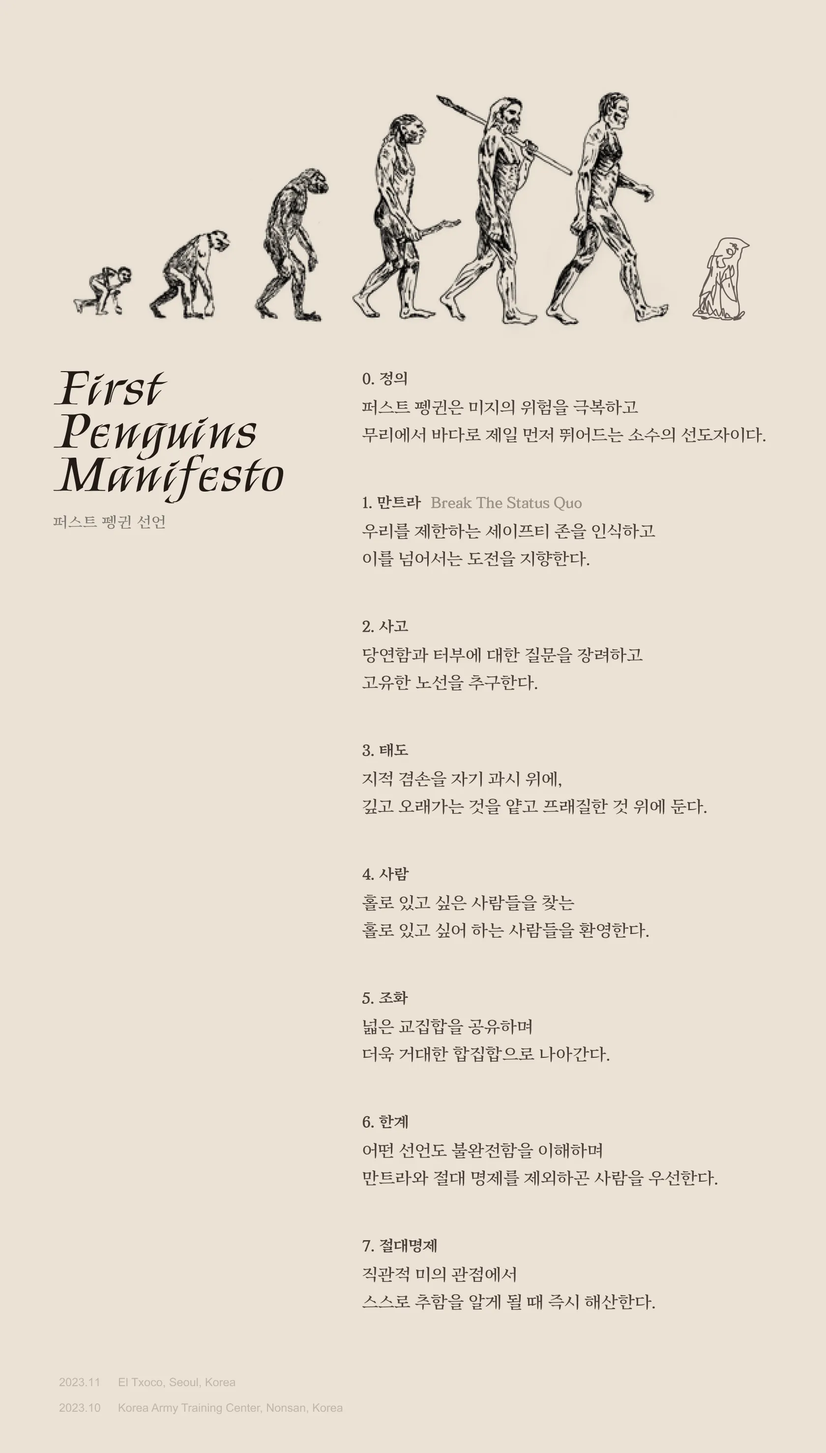 우리는 터부를 깨고, 실체없는 두려움을 넘어서며, 이미 가지고 있는-기득의-자본과 히스토리에 얽매이지 않고자 합니다.